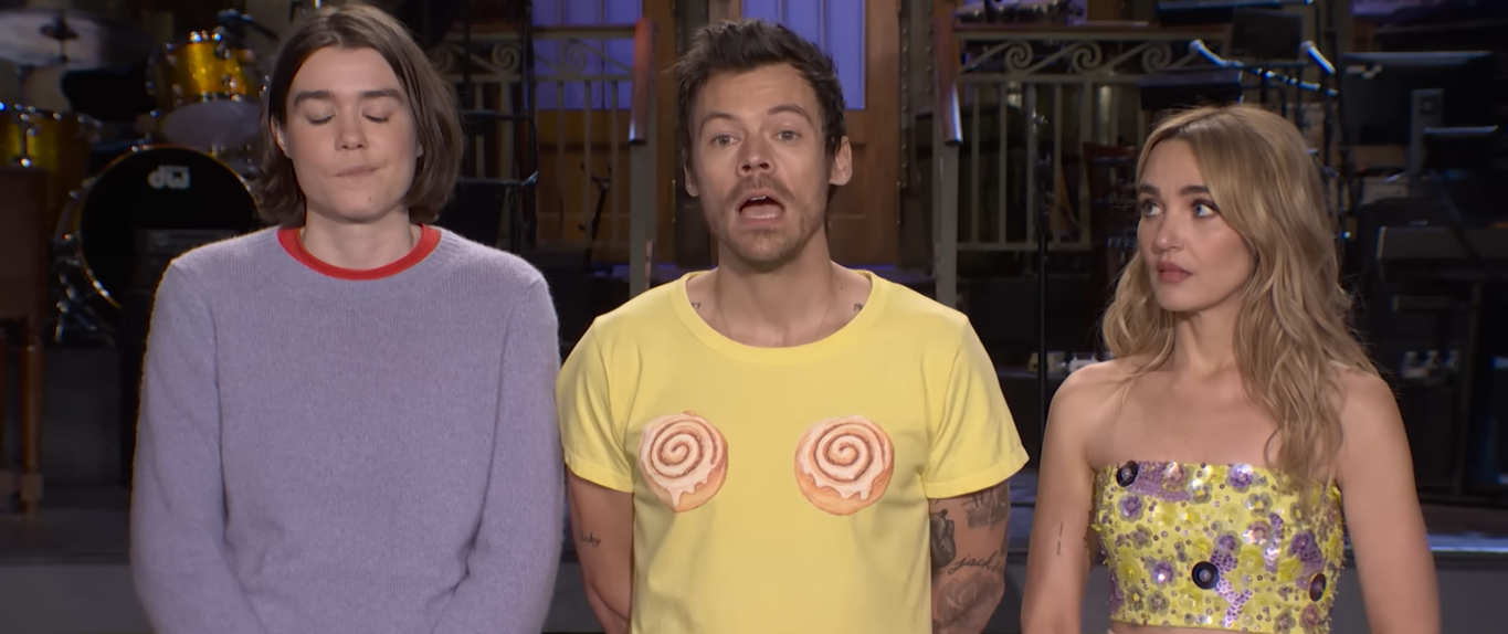 Good morning*, my dear SNL Review Reading Audience. It’s time for me to discuss the 15th episode of the 51st season of Saturday Night Live, aka the second time in history that Harry Styles has turned in double duty as both host and musical guest. (And you know I’m in the right mood for this, having gone for a 45-minute run on Sunday morning.) Has anyone else ever pulled double duty like this multiple times before? Yes, I’m sure of it. Who exactly, you may ask? Well, Britney Spears comes to mind, for one.