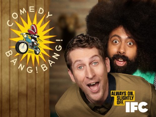 Comedy Bang! Bang!, hosted by Scott Aukerman, began as a podcast (initially entitled Comedy Death-Ray Radio), having grown out of the Comedy Death-Ray stage show hosted by Aukerman at the Upright Citizens Brigade Theater in Hollywood. The podcast – a mixture of interviews and character-based improv – now runs concurrently with Comedy Bang! Bang! the show, which began airing on IFC in 2012. Aukerman’s style, perhaps the archest among all comedians working today, is himself an immediate hint that CB!B! is not your typical talk show. It is a style that is unlikely to work for the masses, and I must admit that it even took me some getting used to, even though Comedy Bang! Bang! is my favorite show currently on the air. Part of this is because it is unusual to see a mediated work so conscious of McLuhan’s maxim. But in this case, it is also because Aukerman can be a little off-putting at first. It does not become clear until becoming attuned to his style how sincere he is. It is straightforward in a way that most other shows do not even think about. This is illustrated by the descriptive episode titles, which may be the biggest acknowledgement that the medium is the message. Each title is a sentence indicating the clothing of that episode’s guest – “Zach Galifianakis Wears A Blue Jacket & Red Socks,” “Amy Poehler Wears a Black Jacket & Grey Pants,” etc. The characteristics of the talk show genre shape and control its content, even characteristics that are not usually considered, like the guest’s wardrobe.