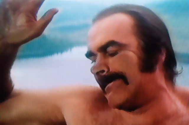 We began about a half hour in, with the infamous erection scene. In the future of Zardoz, a race called the Eternals paid for immortality with the price of sterility and thus did not understand the stimulus behind penile enhancement. When Zed (Connery) of the mortal Brutals invaded their society, they studied his arousal to answer this question. A monitor represented his manhood with waves and soft plucking whose intensity corresponded to his excitement. Thus was revealed to us the concept of the boner guitar.