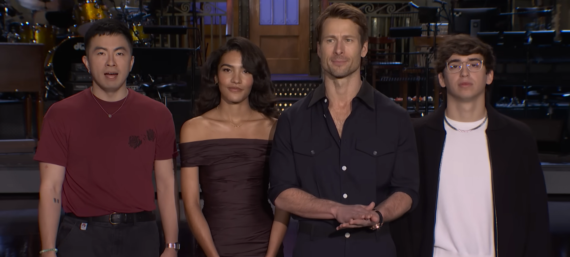 Back to the sketches and the variety, this particular episode that I’m reviewing right now boasts host Glen Powell and musical guest Olivia Dean. This represents the first time for both of them in those official capacities, marking the second episode in a row in which that was the case. I’m pretty sure that’s not the first time that has happened in the show’s history.