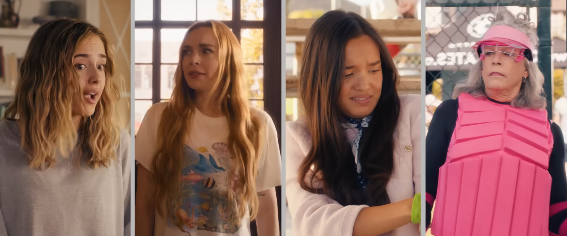 Starring: Jamie Lee Curtis, Lindsay Lohan, Julia Butters, Sophia Hammons, Manny Jacinto, Mark Harmon, Chad Michael Murray, Maiteryi Ramakrishnan, Vanessa Bayer, Jordan E. Cooper, Stephen Tobolowsky, Elaine Hendrix, Chloe Fineman, Rosalind Chao, Christina Vidal Mitchell, Haley Hudson, Lucille Soong